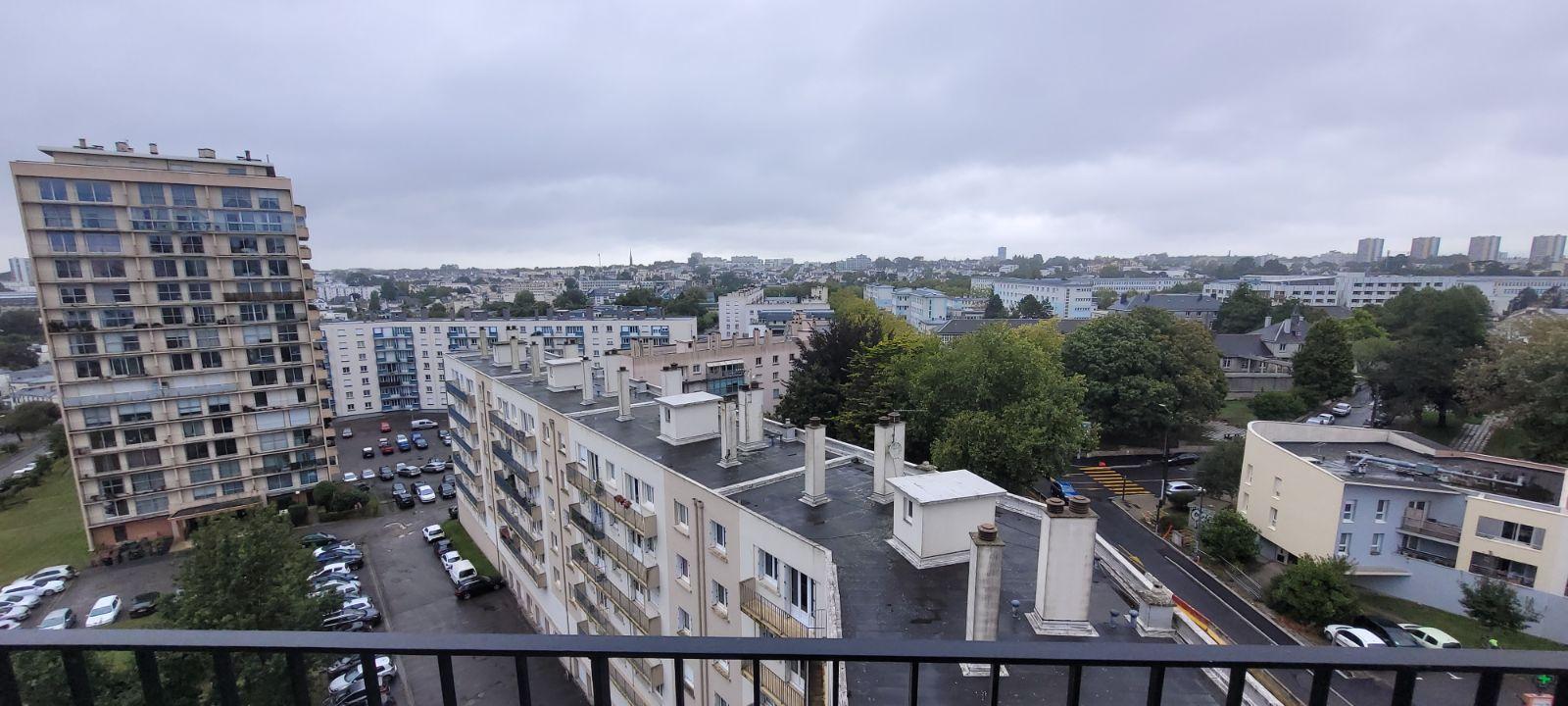 BREST - Secteur Kérichen - Dans résidence bien tenue - Au 8ème étage, Appartement de type 4 ayant cuisine indépendante aménagée et équipée, salon-séjour, 2 chambres, 1 salle d'eau, 1 wc, 1 loggia et 1 cave.